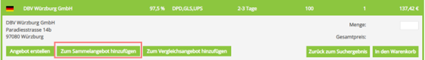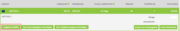 Ein Angebot erstellen Sie ganz einfach, indem Sie beim gewünschten Artikel anstatt auf „In den Warenkorb“ auf „Angebot erstellen“ drücken.