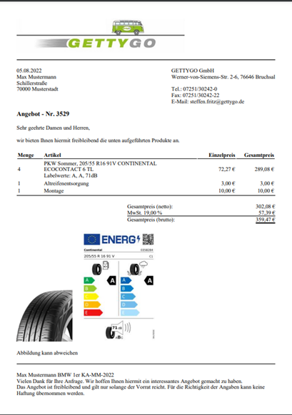 Den Dienstleistungen, die Sie rund um Reifen, Räder und Teile anbieten sind dabei keine Grenzen gesetzt. Von der Altreifenentsorgung über das Auswuchten bis hin zur Räderwäsche, alles können Sie Ihrem Kunden im Angebot aufzeigen.