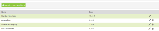 Außerdem können Sie nun noch optional Dienstleistungen zum Angebot hinzufügen. Dienstleistungen können Sie standardmäßig vorkonfigurieren. (Mehr dazu unter FAQ Dienstleistungen)