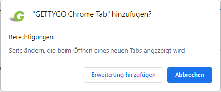 Klicken Sie auf das Suchergebnis GETTYGO Chrome Tab und anschließend auf Hinzufügen.