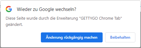Alternativ über den folgenden Link: https://chrome.google.com/webstore/detail/gettygo-chrome-tab/faiboodmjhkfapbcmdbfmkadfdideool